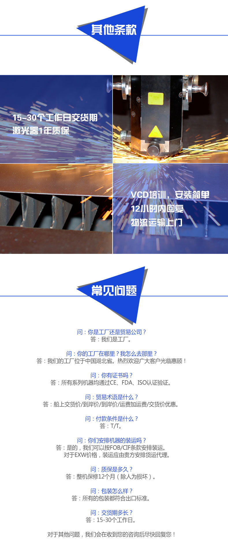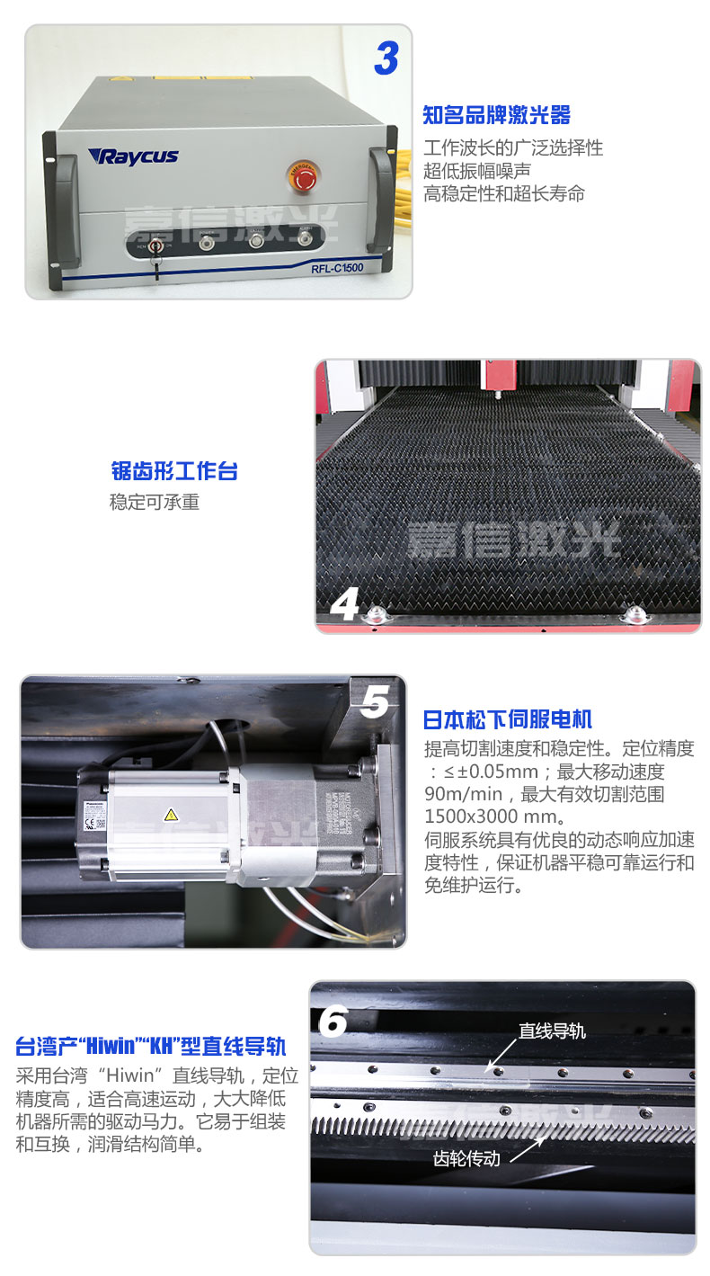 2000w光纖切割機采用德國IPG激光器,美國進口專用光纖切割頭,日本松下伺服電機,優質的光束質量,更為流暢的切割線條,帶來光纖切割機良好的切割效果。