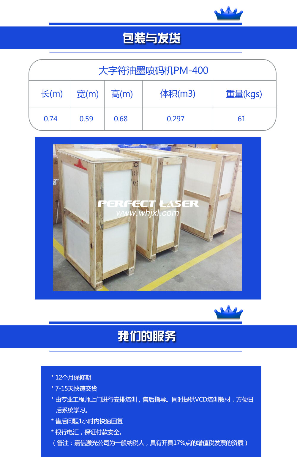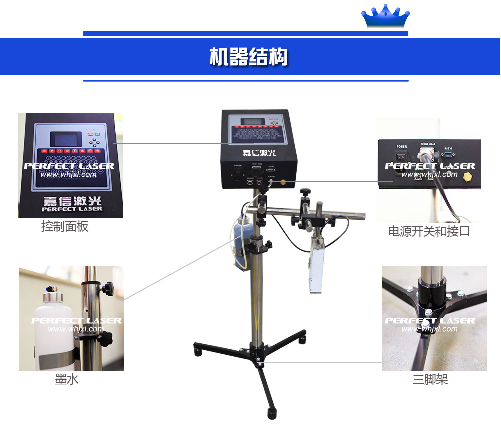 嘉信激光大字符噴碼機品質優良, 設計人性化,人機互動更加方便 穩定性提高,維護更簡單 墨路電路升級,采用模塊化設計,模具化生產 可以無故障運行更長時間。一鍵輕觸啟動/停止功能,噴嘴自動清洗。