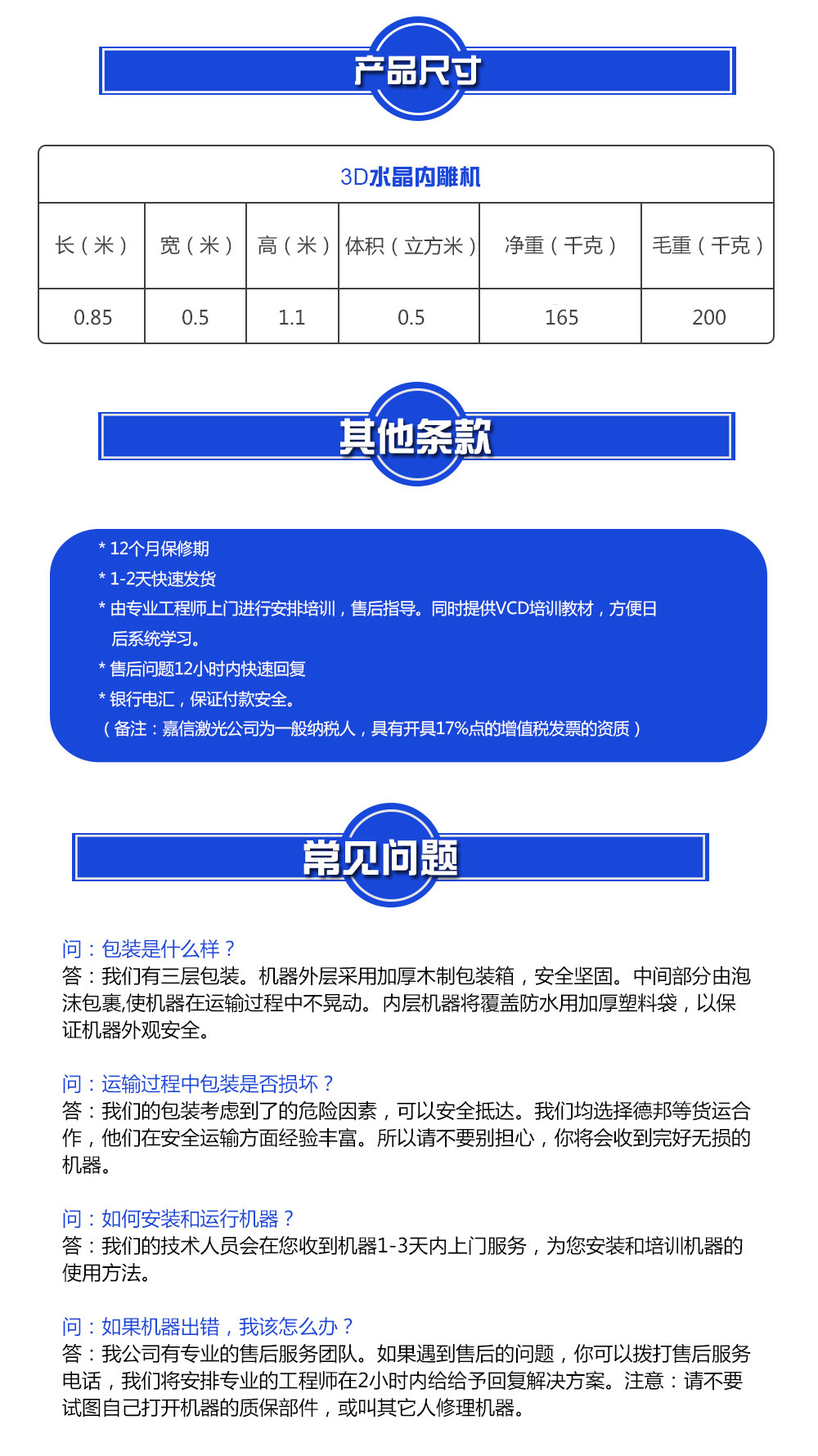 3.雕刻范圍廣:3D水晶內雕機可雕刻面積達到300mm X 400mm X 120mm, 能夠滿足個性化的雕刻定制需求,有很高的雕刻和標識速度。