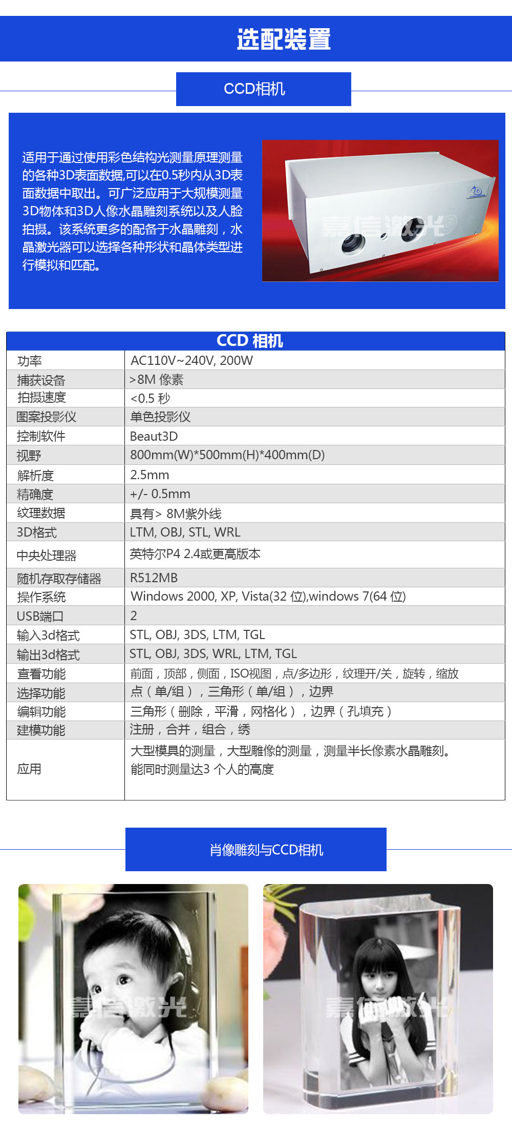 5. 工藝品水晶3D內雕機可雕刻2D/3D人像、人名手腳印、獎杯等個性化禮品紀念品,也可批量生產2D/3D動物、植物、建筑、車、船、飛機等模型產品和3D場景展示。